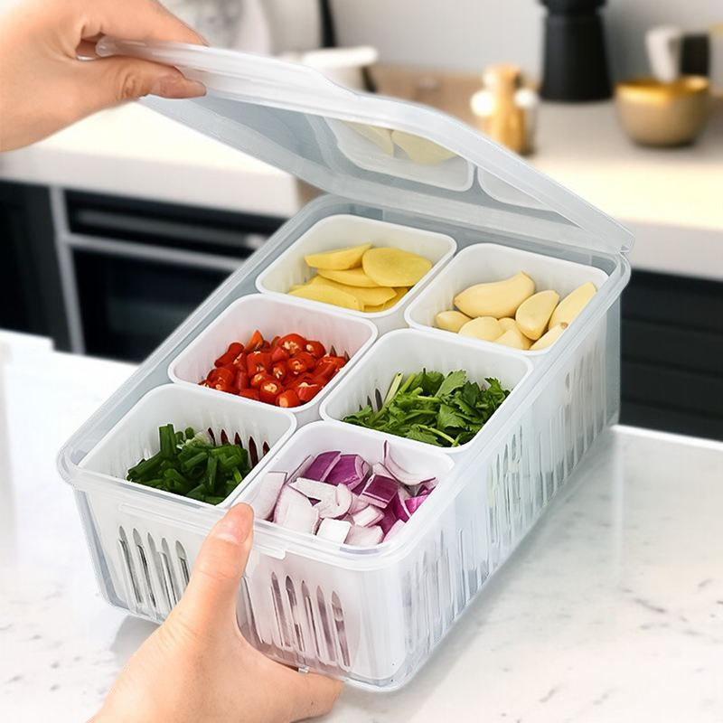 ● 심플하고 실용적인 디자인으로 주방 어디에나 잘 어울리며, 파 외에도 다양한 식재료 신선 보관이 가능합니다. ● 뚜껑과 칸막이가 포함되어 있어 냉장고 안에서 냄새 섞임 없이 깔끔하게 분리 보관할 수 있습니다. ● 내구성 좋은 고급 소재로 제작되어 오랜 기간 변형 없이 안심하고 사용할 수 있습니다. ● 투명한 용기로 내용물 확인이 쉬워 재료 관리가 편리하며, 잔여량 파악도 용이합니다. ● 공간 효율적인 설계로 냉장고 내부를 깔끔하게 정리할 수 있어 주방 환경이 한층 쾌적해집니다.